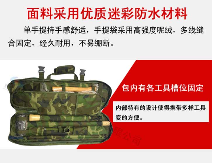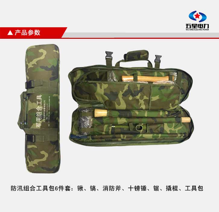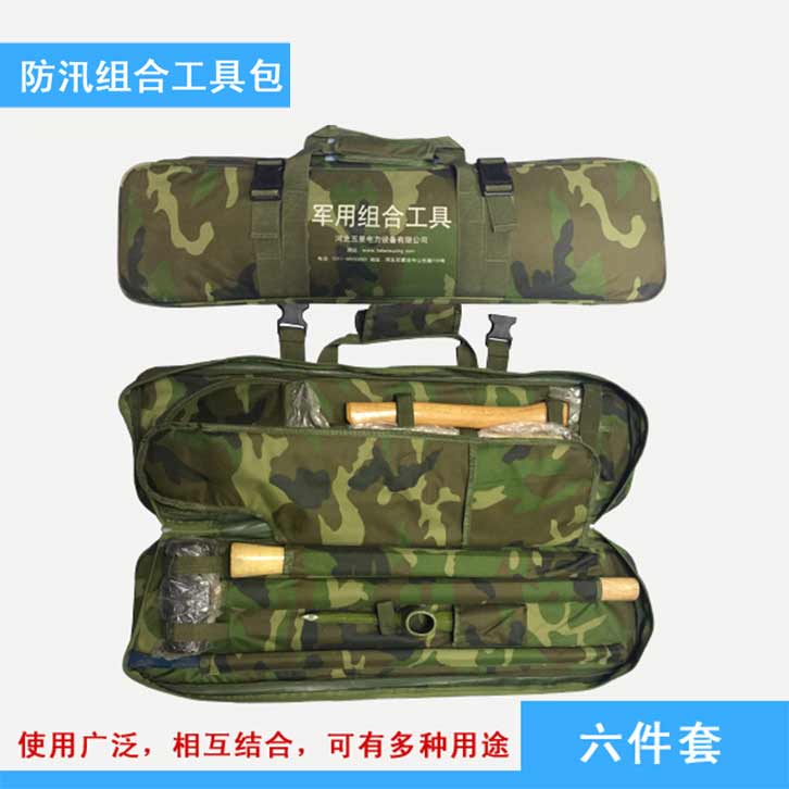 防汛搶險組合式工具包特點:靈活性好,質量可靠,可在惡劣的環境下單兵背負作業,攜帶方便,體積小、相互結合該組合工具配備齊全適用于救援隊員適用??筛鶕枨蠖ㄖ飘a品配件及功能性。
