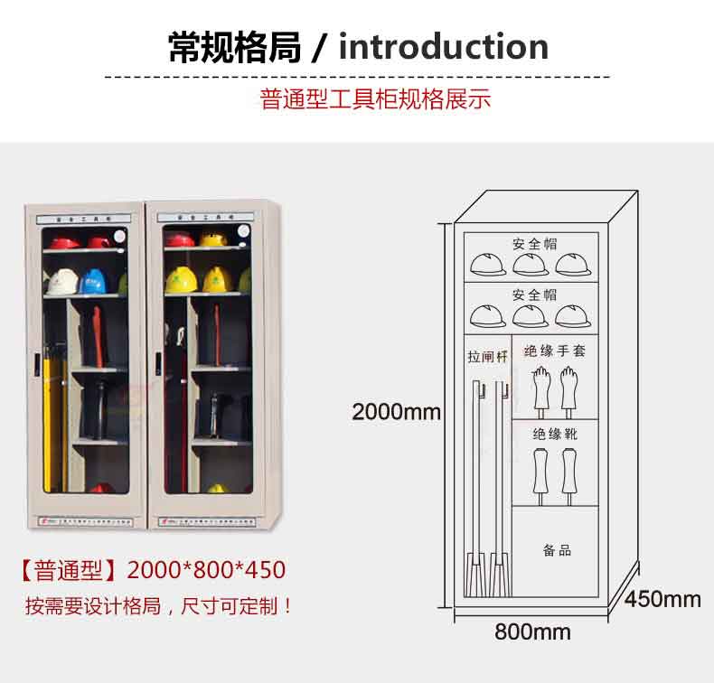 電力安全工具柜又稱安全工器具柜,按功能可以分為普通排風除濕柜,智能烘干除濕柜,智能抽濕除濕柜等 外殼選用1.2優質冷板,采用磷化鋅系、藝術型靜電噴涂,高強度鋼化透明玻璃(外觀色為微機灰)。接地線均配有接地線繞線架及帶夾反光編號牌,使接地線纏繞規范不易損壞,擺放整齊使用方便;絕緣手套配有防粘連撐板,絕緣擋板、絕緣棒、驗電筆、操作桿均設有橡膠墊定位卡,安全帶、腳扣、鑰匙設有專用掛鉤,標示牌按種類分格放置,圍網配有專用包,網桿配有專用筒,網桿座分格放置,防毒面具配有專用箱,呼吸器設有專用滑板。廣泛應用于各種電壓等級的變電站、集控站、線路工區以及電力公司客服中心等單位和部門,并適應不同溫濕度地區的使用。